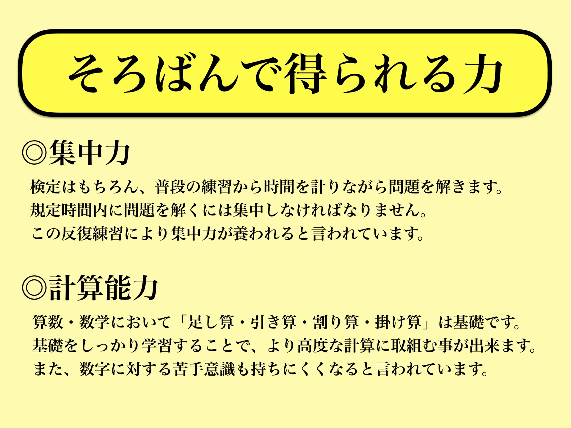 | そろばん教室 休校について | 祝日ならびに 長期連休時 | 春休み期間 夏休み期間 冬休み期間 |